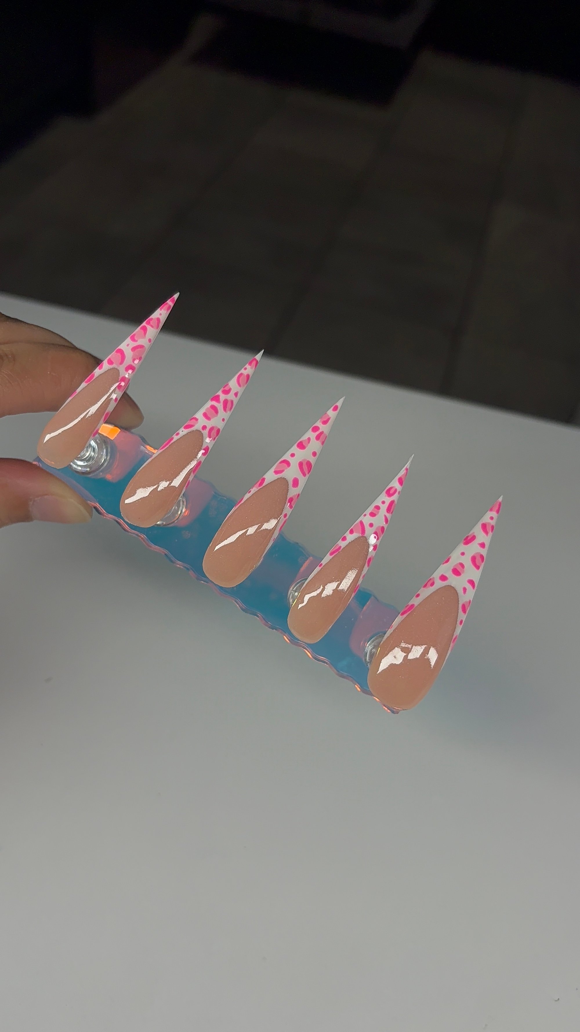 Make a bold statement with these extra-long stiletto press-on nails featuring a glossy nude base and vibrant pink leopard print tips. Handcrafted for a sleek, salon-quality finish and designed for easy, instant glam. Perfect for turning heads wherever you go. ✨💅